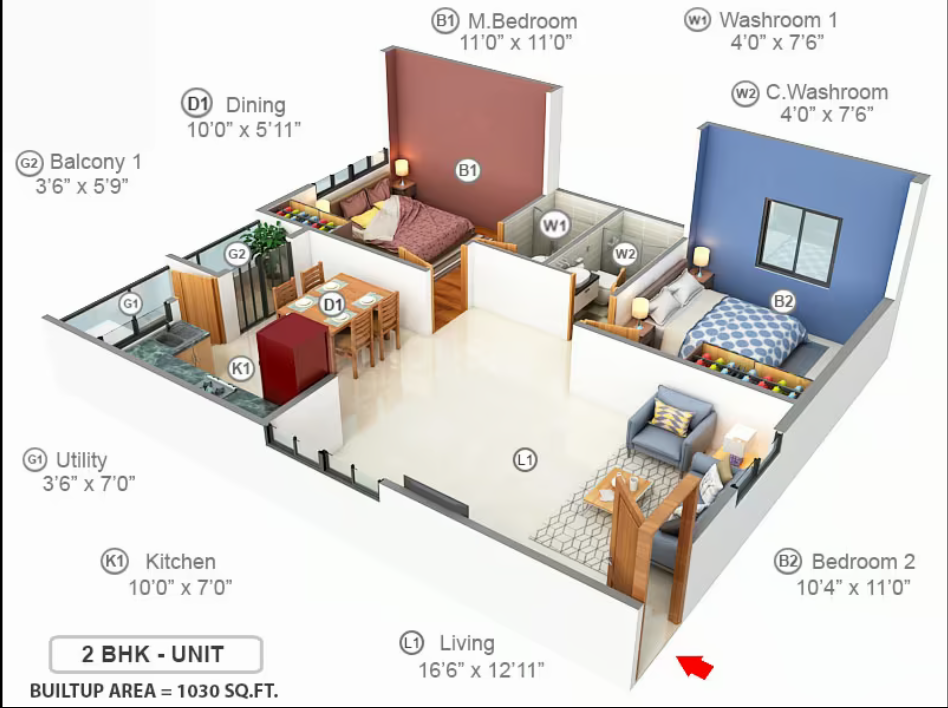 1030.00 sq.ft. - 1350.00 sq.ft.sq.ft